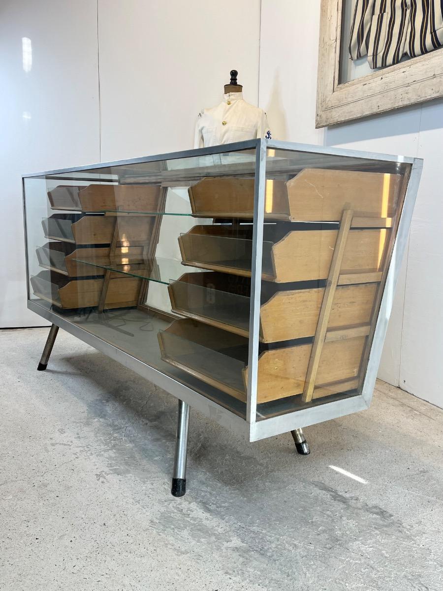 1950’s Haberdashery Glass Counter - Comptoir 1950 en verre & Metal