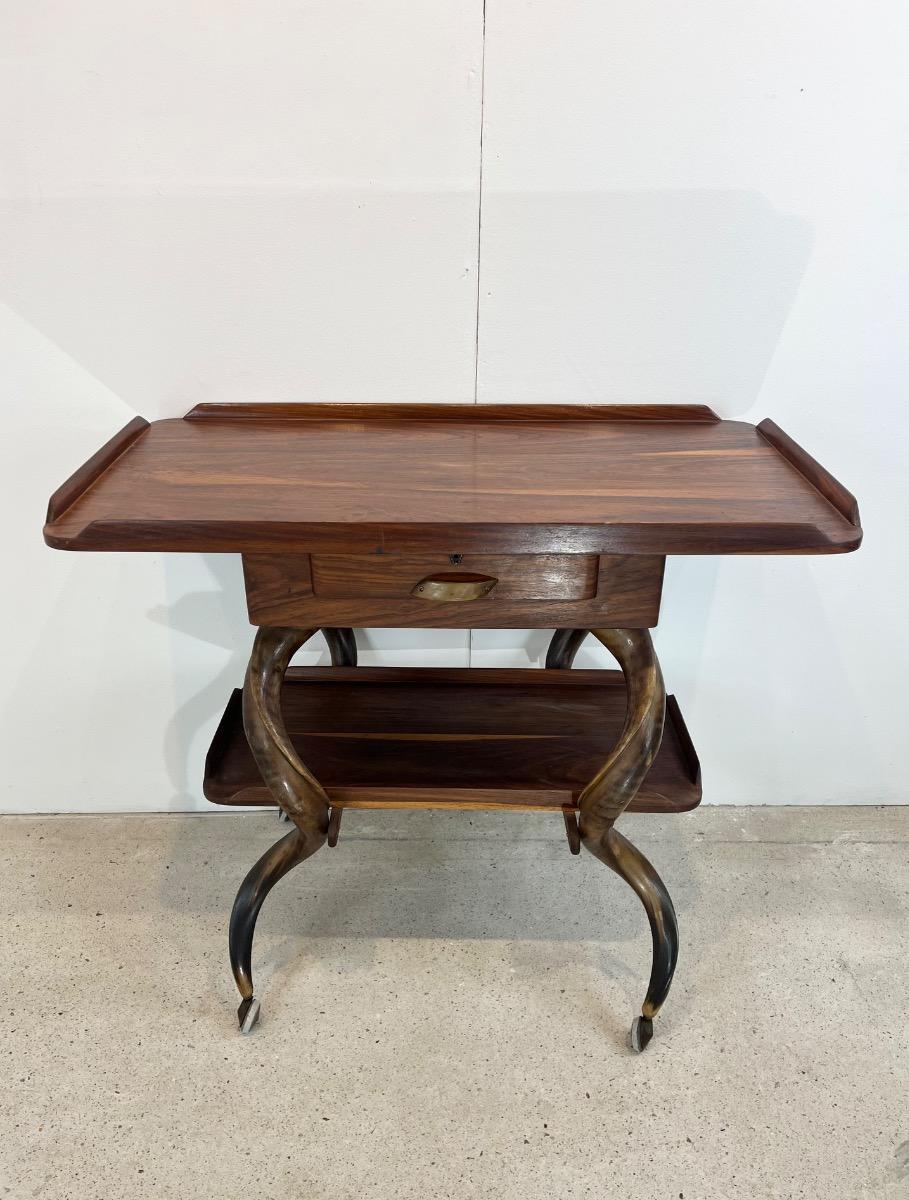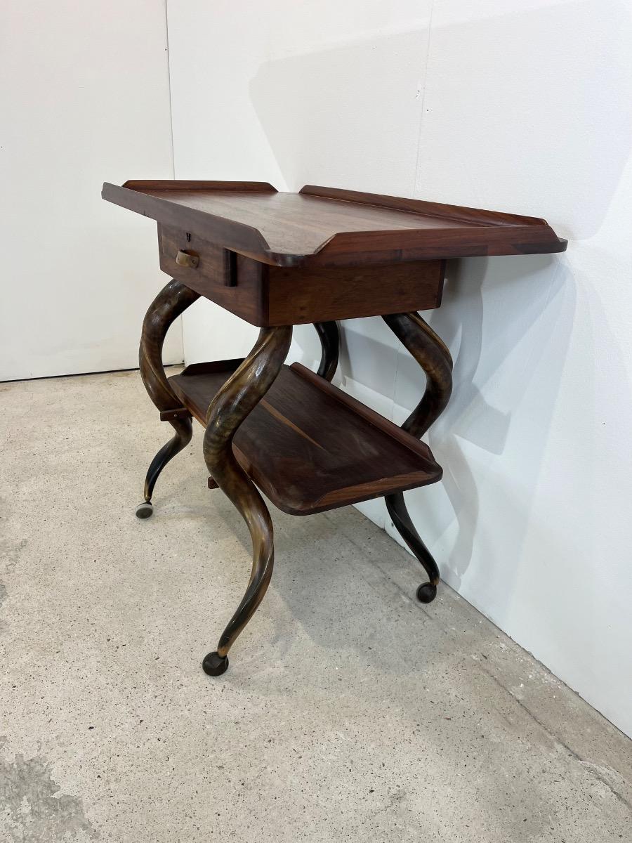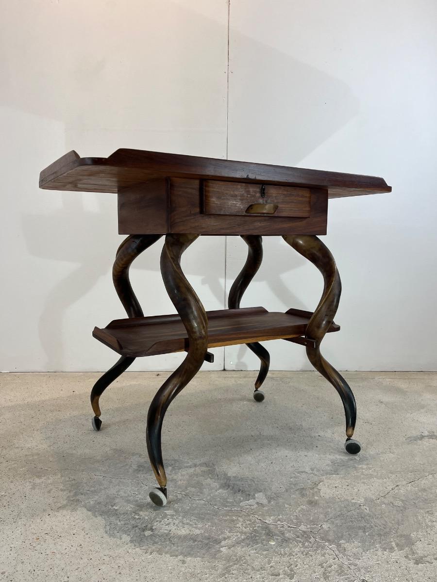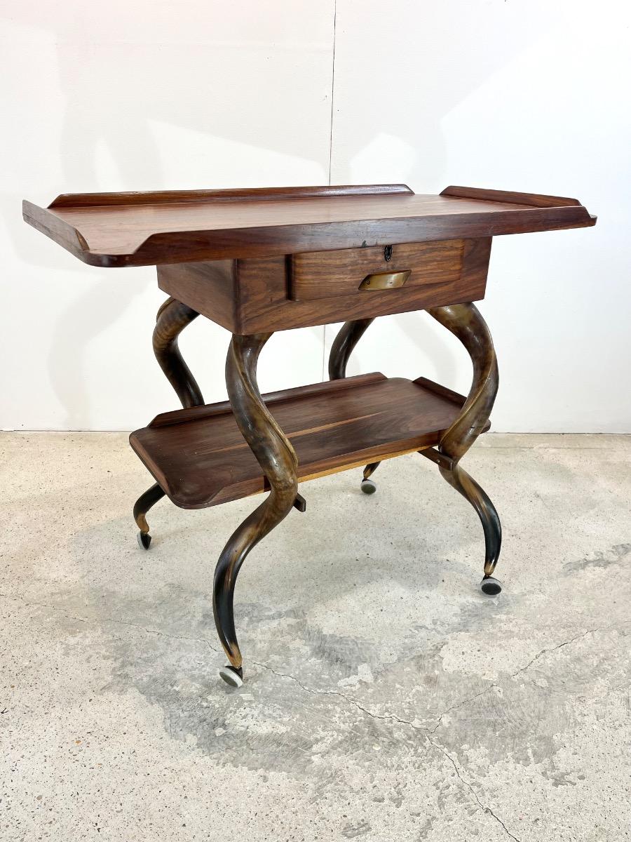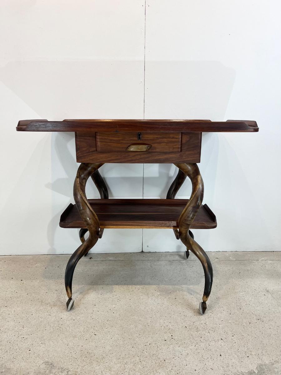 1960’s South African console -rolling table -Wood & kudu Horns