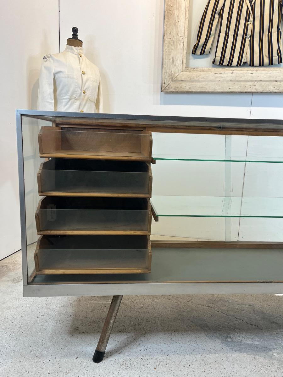 1950’s Haberdashery Glass Counter - Comptoir 1950 en verre & Metal